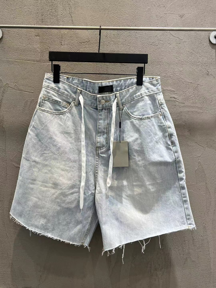 Balenciaga new drawstring washed loose straight-leg denim shorts-5489