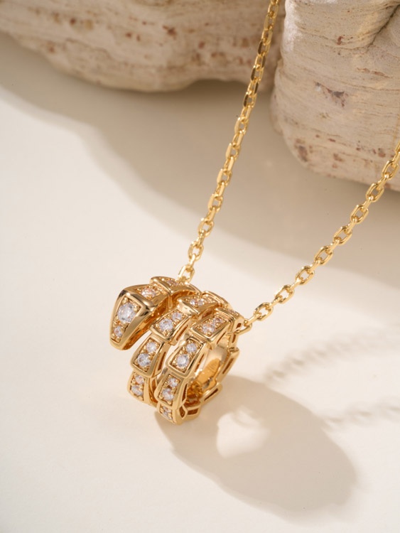 Bulgari snake bone full diamond necklace-3795