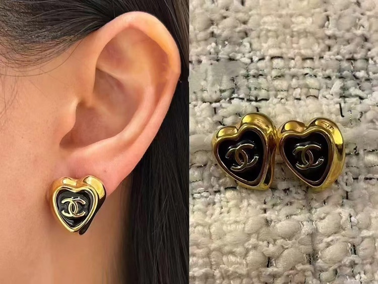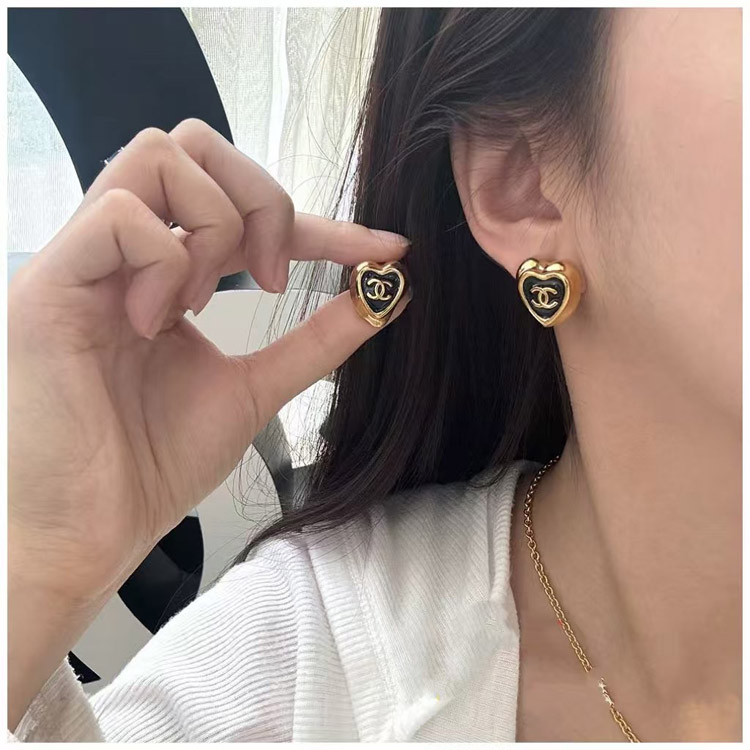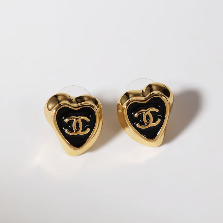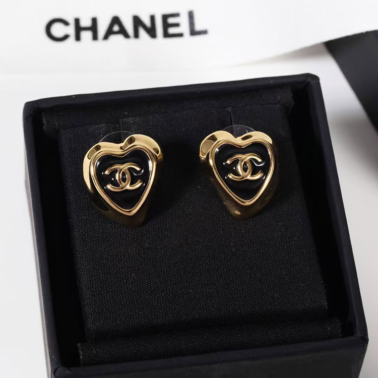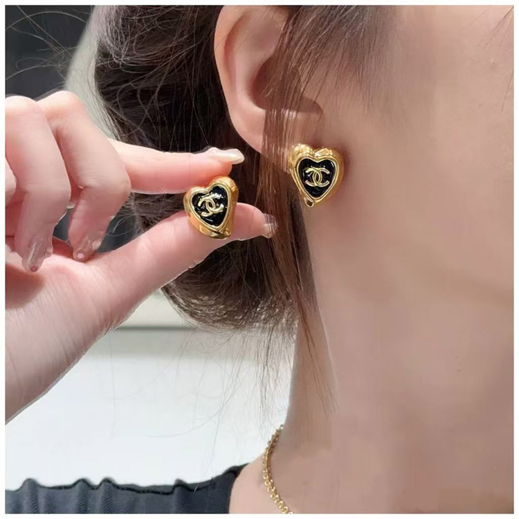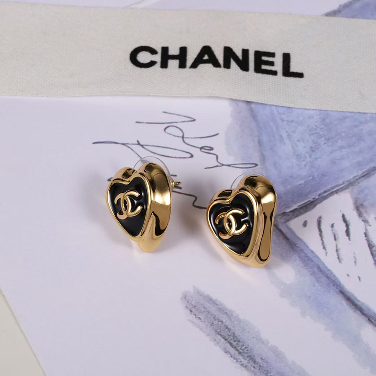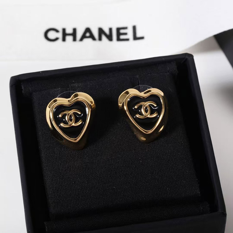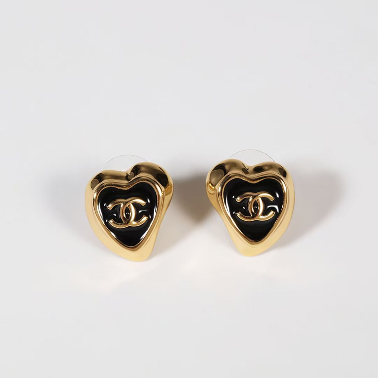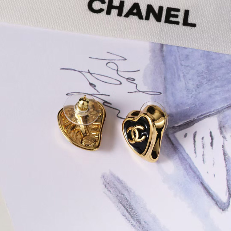 Home > Chanel black enamel love double C gold edge earrings-3739