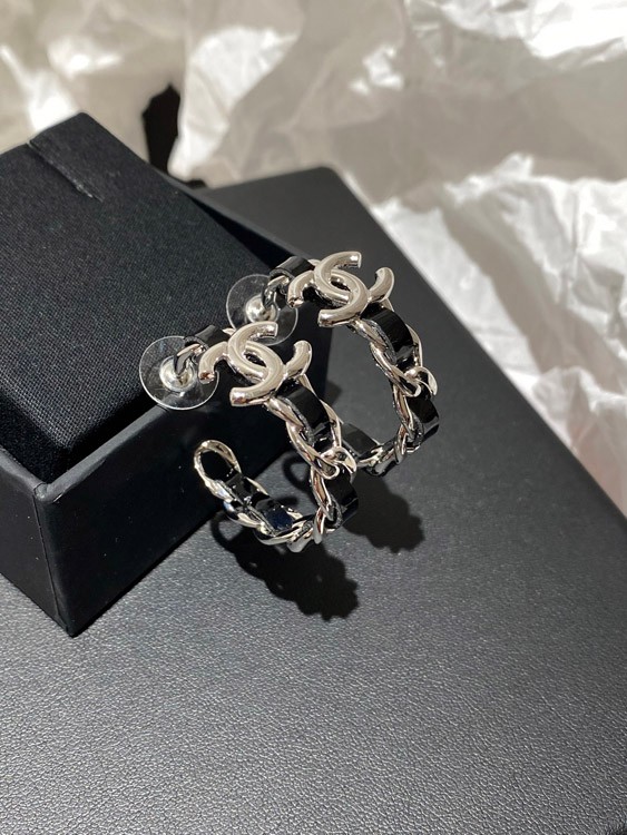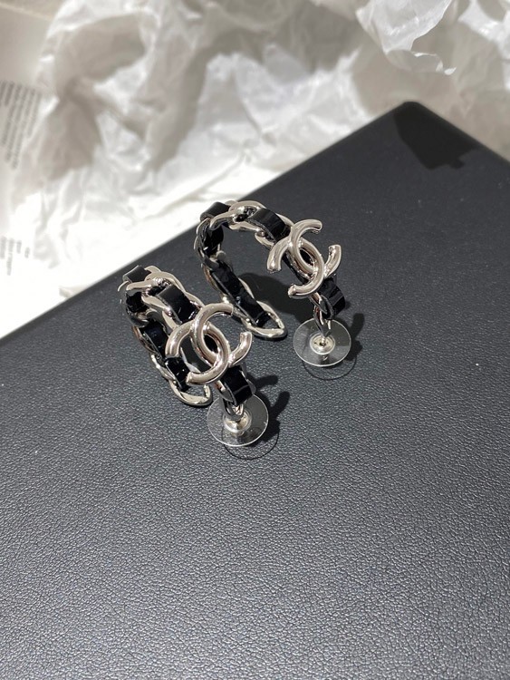 Home > Chanel silver leather hoop earrings-3596