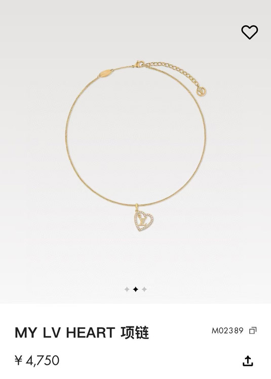 Louis Vuitton LV gold letter hollow diamond heart necklace-3725