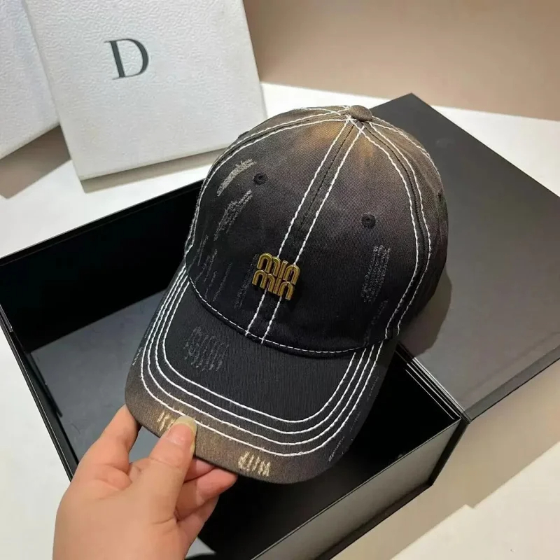 Home > Miu Miu Distressed soft top denim cotton sun protection baseball cap-2728