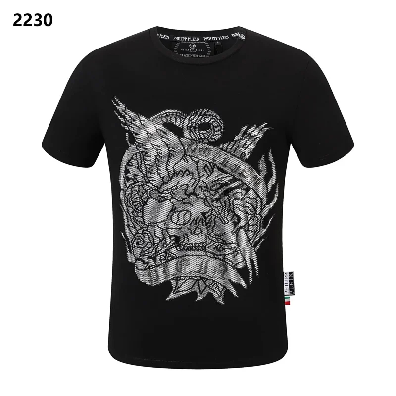 PLEIN Medusa Tiger Head Printed Diamond Short Sleeve T-Shirt-1982