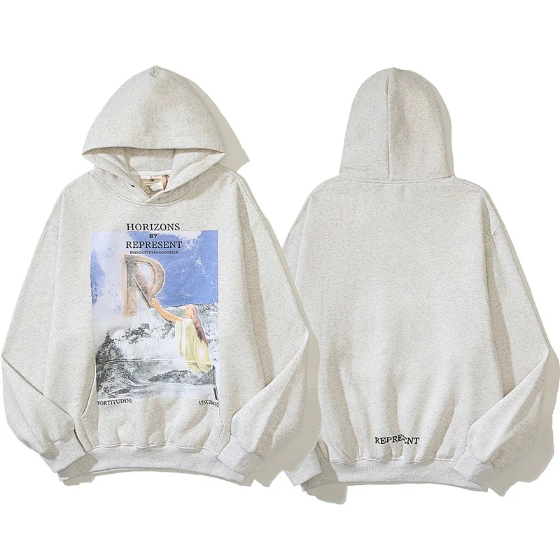 REPRESENT Printed Drawstring Hooded Jersey Sweatshirt-4497