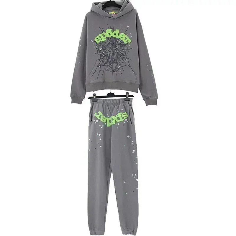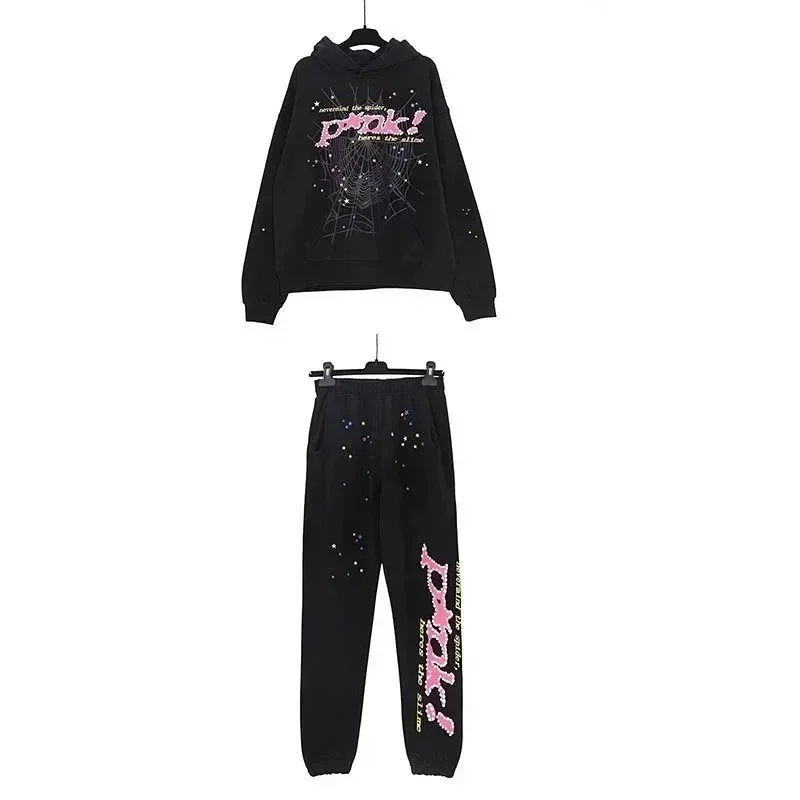Sp5der Celebrity-style spider web foam hooded casual suit-2273
